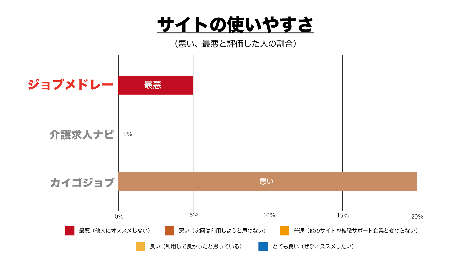 サイトの使いやすさでもやっぱりカイゴジョブが1番低くジョブメドレー・マイナビ介護職が1番目