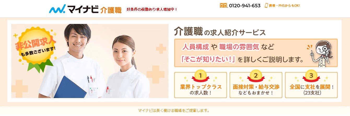マイナビ介護職は、転職が初めてでも転職のプロであるアドバイザーが履歴書添削や面接対策、業務開始後のアフターフォローまで行ってくれるので、転職が初めてでも不安なく好条件の職場へと転職ができます。